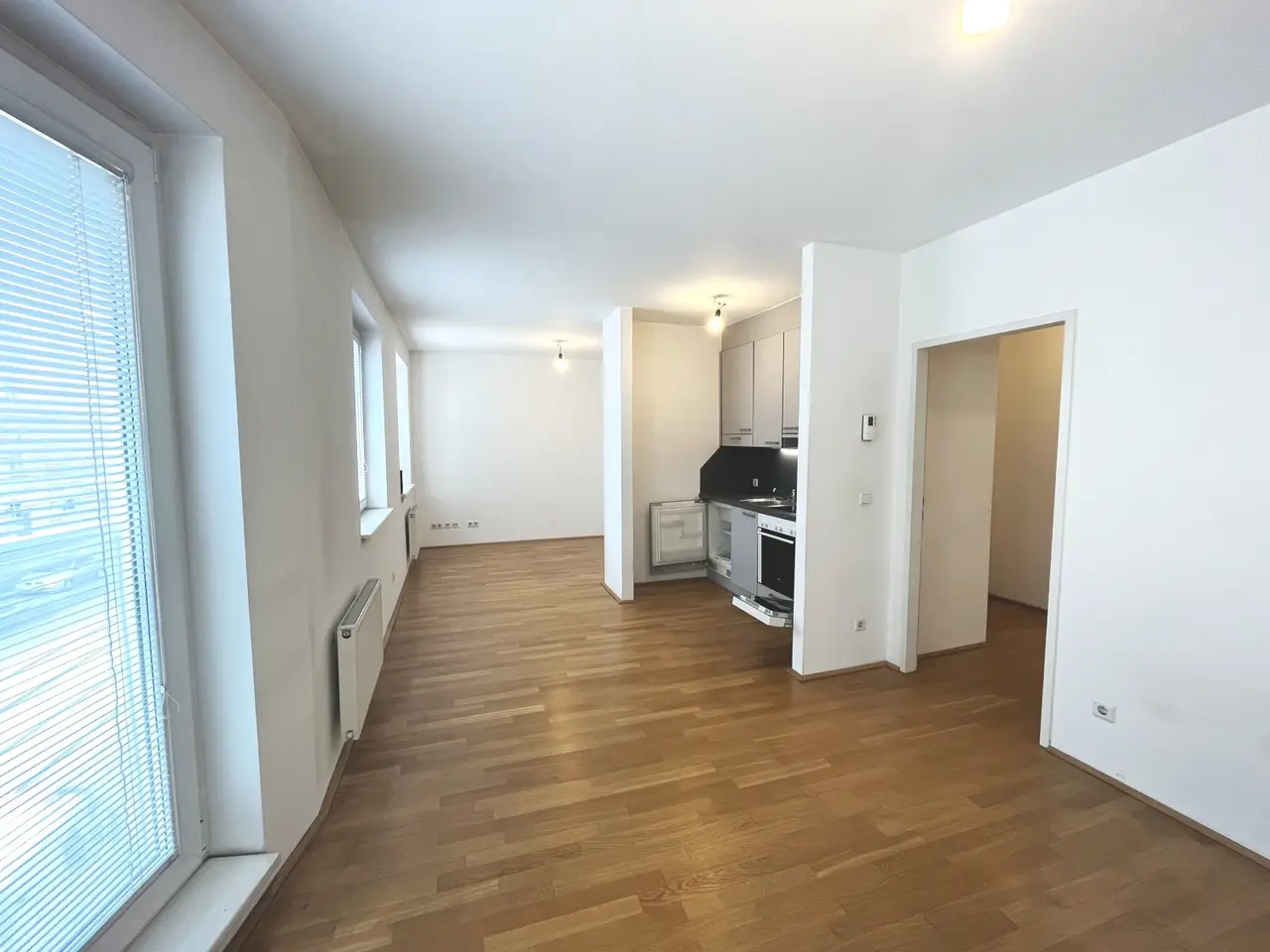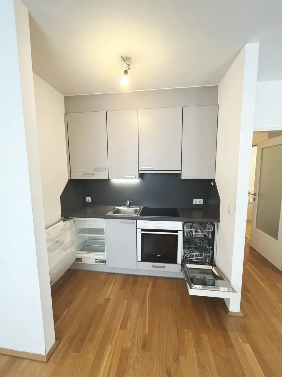 Die ca. 35 m² große Wohnung im 1. Dachgeschoss eines gepflegten Neubaus umfasst einen Vorraum, einen geräumigen Wohn-/Schlafraum mit Küche und ein Badezimmer mit Toilette.