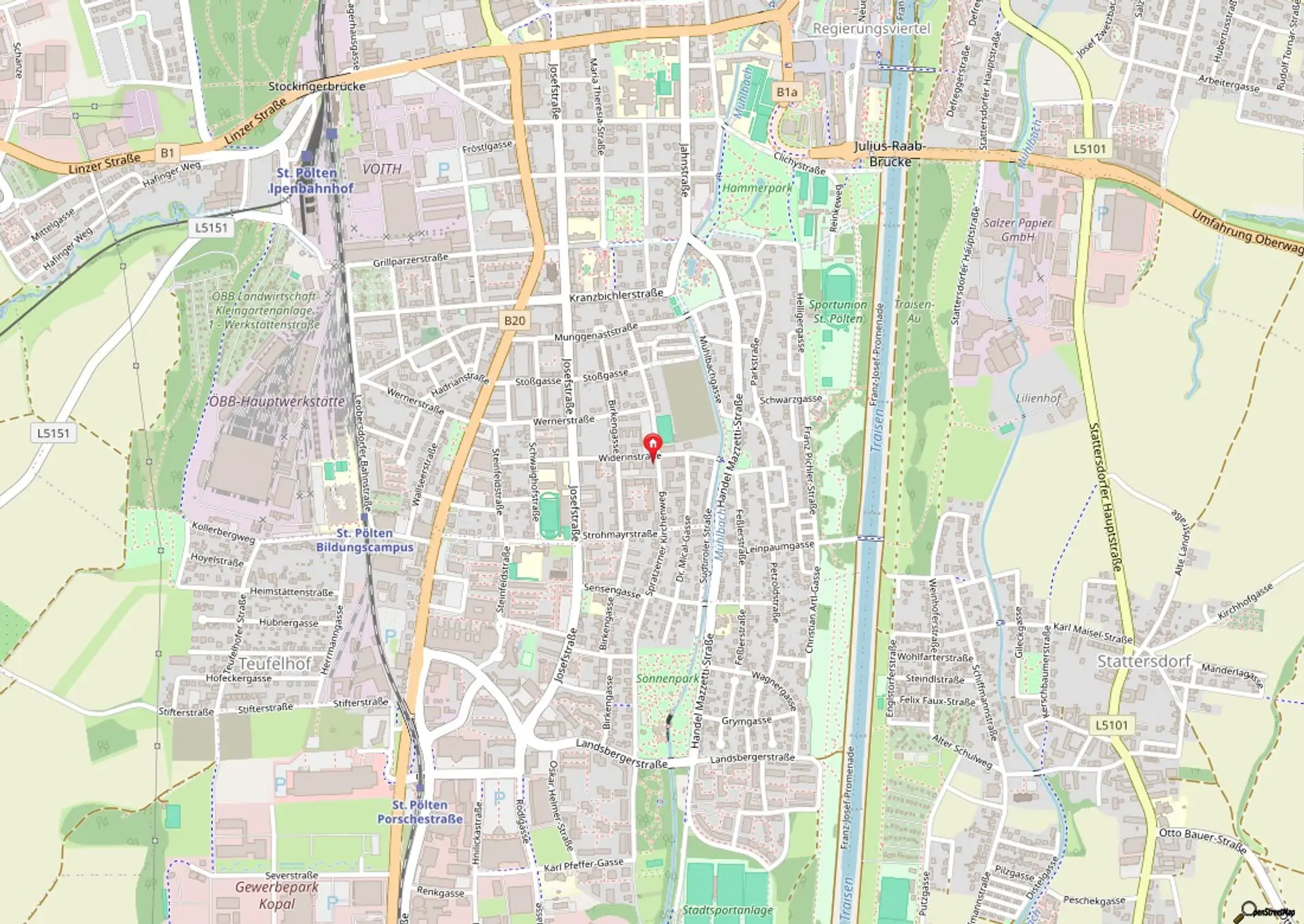 Zentrale Lage in St. Pölten mit hervorragender Anbindung an öffentliche Verkehrsmittel. Einkaufsmöglichkeiten, Schulen und Freizeiteinrichtungen in unmittelbarer Nähe. Ruhige Wohngegend mit grünen Erholungsflächen und dennoch kurze Wege ins Stadtzentrum.