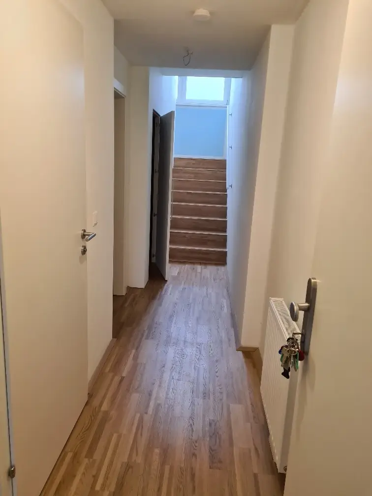 Die ca. 125 m² große Wohnung liegt im zugebauten Dachgeschoss eines sanierten Altbaus und gliedert sich in zwei Etagen. Die 1. Etage umfasst einen Vorraum, zwei Zimmer, einen Gang, einen Abstellraum, ein Badezimmer und eine separate Toilette. Die große Wohnküche mit Zugang auf die schöne Freifläche befindet sich auf der 2. Etage.