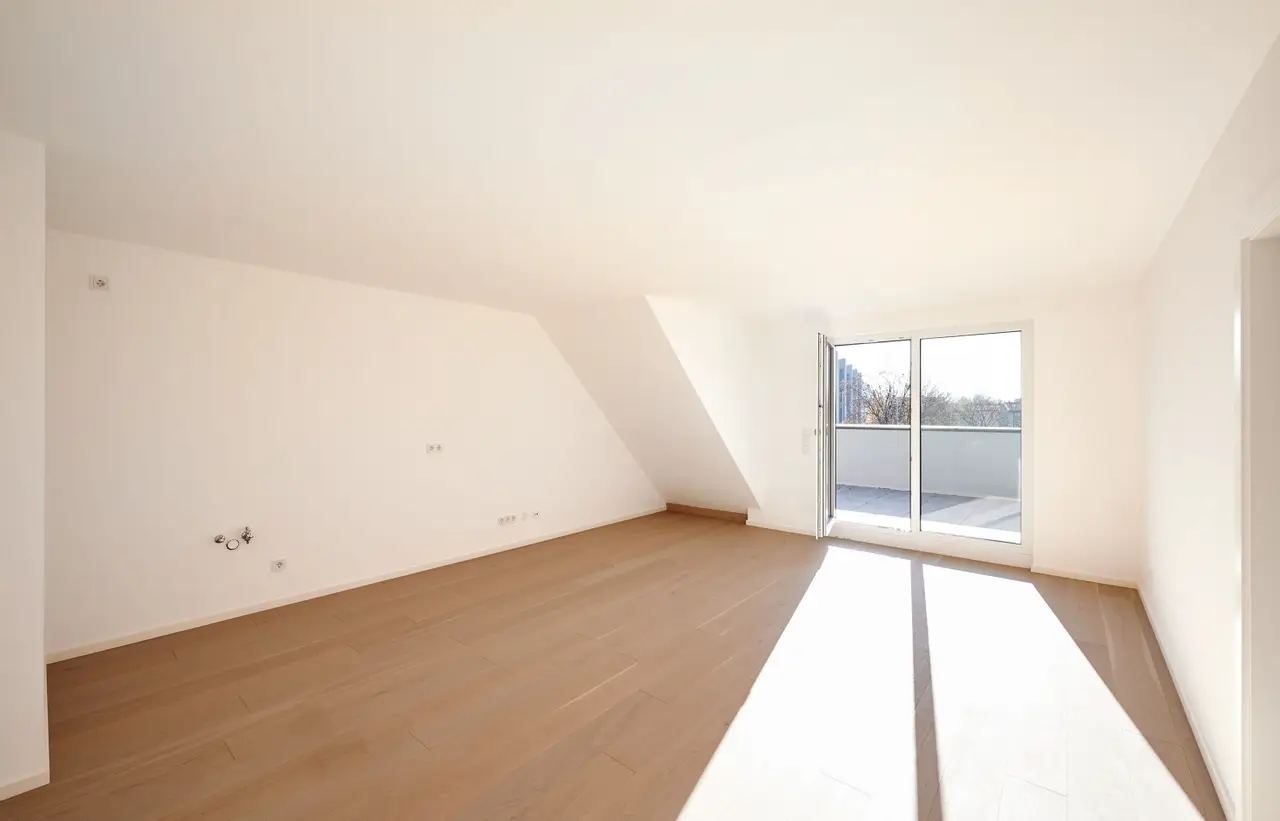 Diese moderne 4-Zimmer-Wohnung mit großzügiger Terrasse in Hoflage ist ein ideales Zuhause für Familien und stellt zugleich ein attraktives Investment im lebenswerten 22. Bezirk dar. Auf ca. 89,5 m² im 1. Dachgeschoss eines kürzlich fertiggestellten Neubaus bietet die Wohnung eine sonnige Terrasse mit ca. 24 m² – perfekt für entspannte Stunden im Freien. Die Lage nahe der Donau und die vielfältigen Lebensqualitäten der Umgebung runden das Wohnerlebnis ab DieAusstattungs-Highlights: