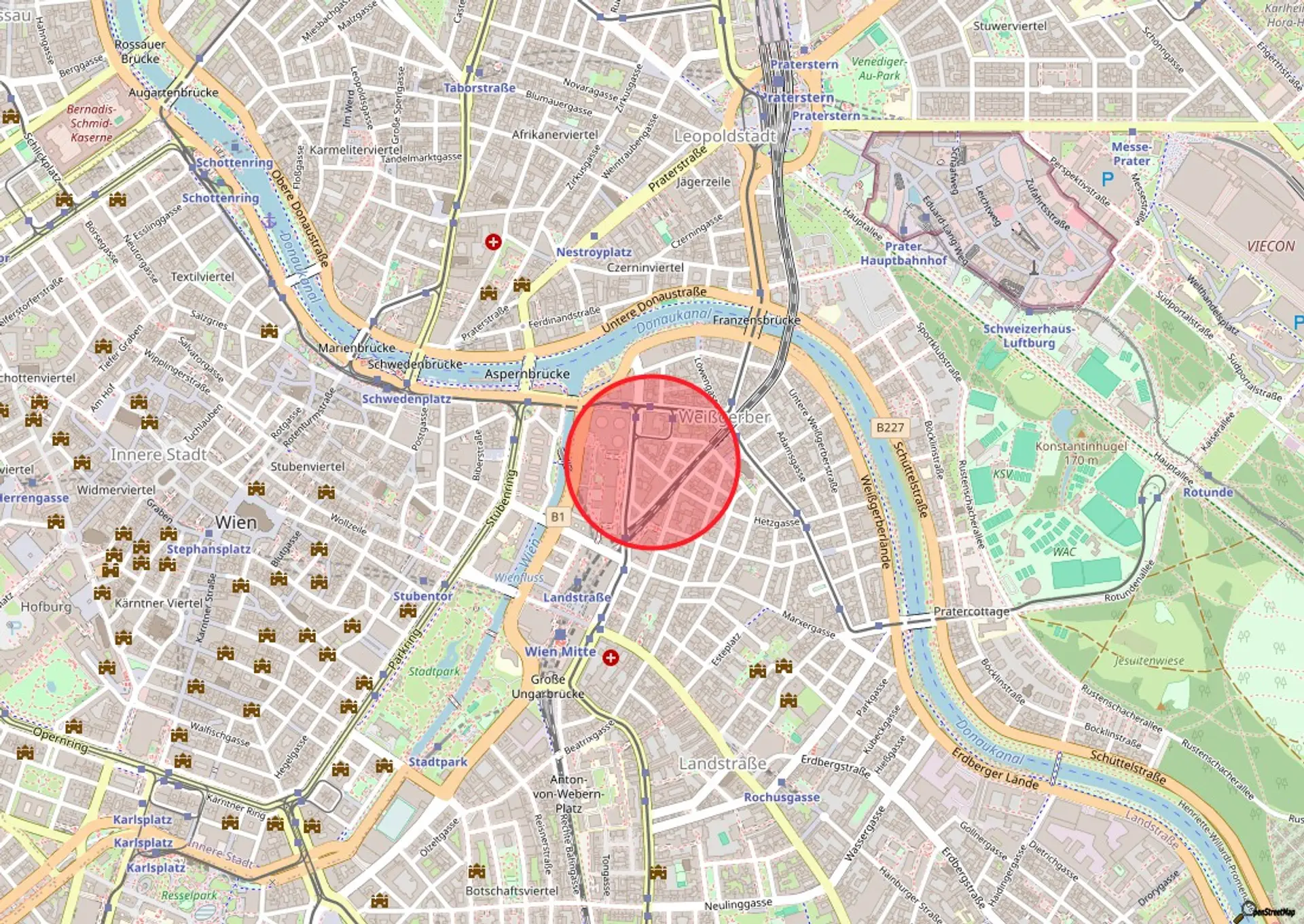 Zentrale, zugleich angenehm ruhige Lage im 3. Bezirk. Nah an Geschäften, Cafés, dem Rochusmarkt und mehreren Parks. Perfekte Verkehrsanbindung sowie kurze Wege in die Innenstadt bieten hohen Komfort für Alltag, Erholung und urbanes Leben.