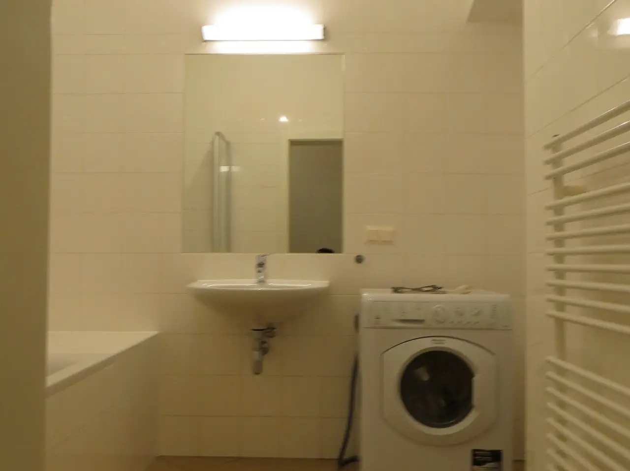 - Badezimmer mit Badewanne und Waschmaschinenanschluss