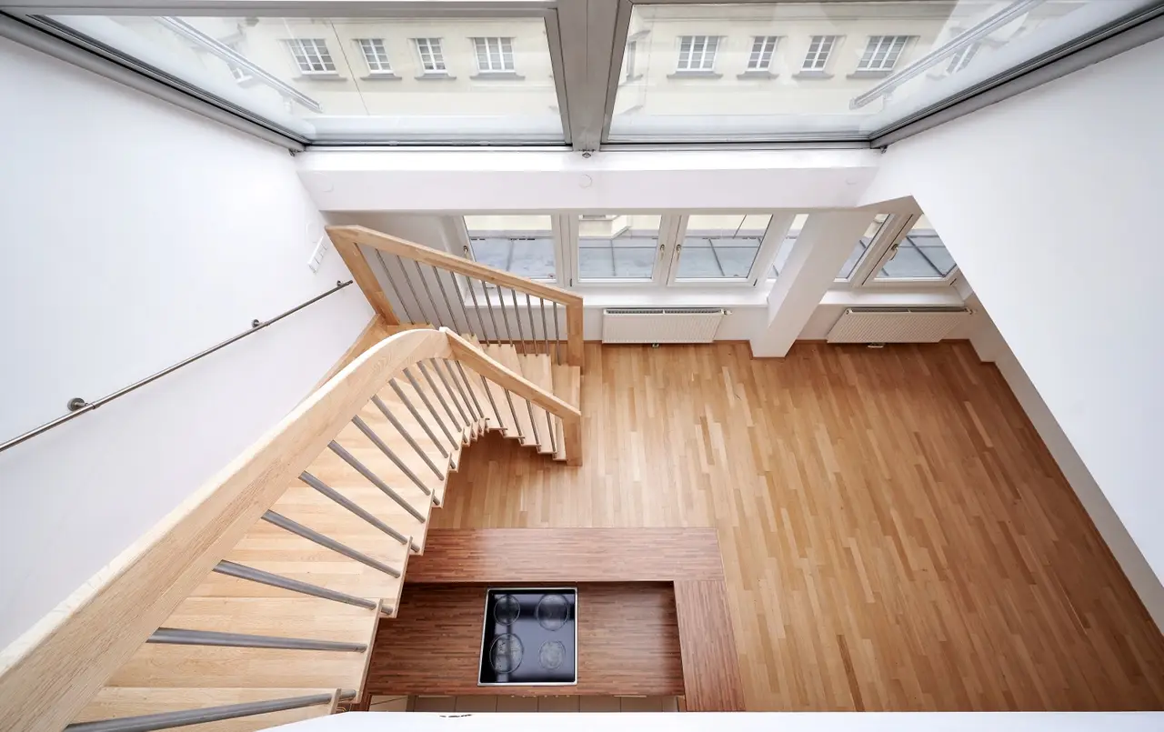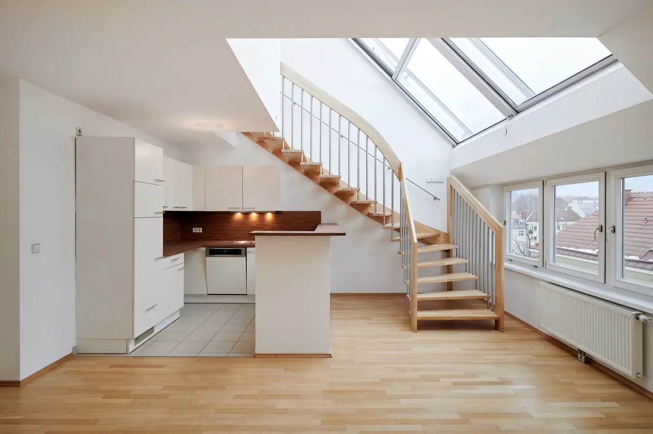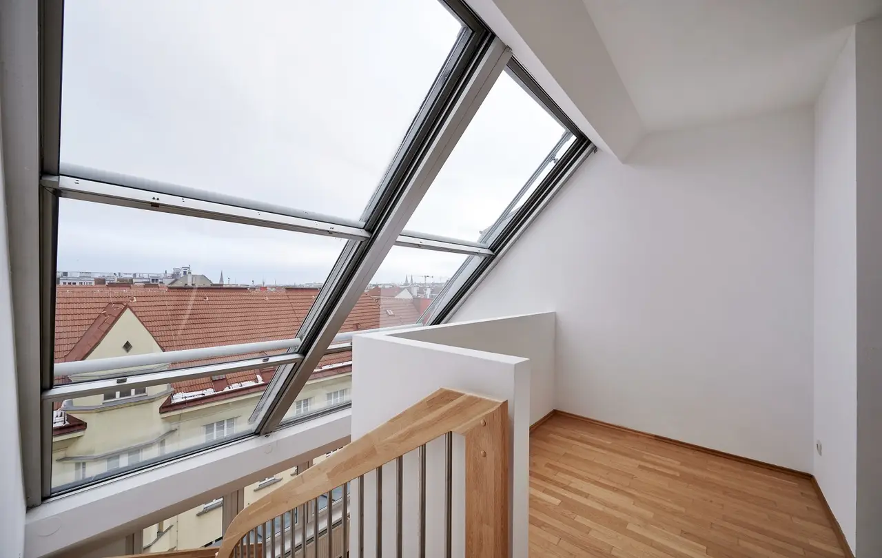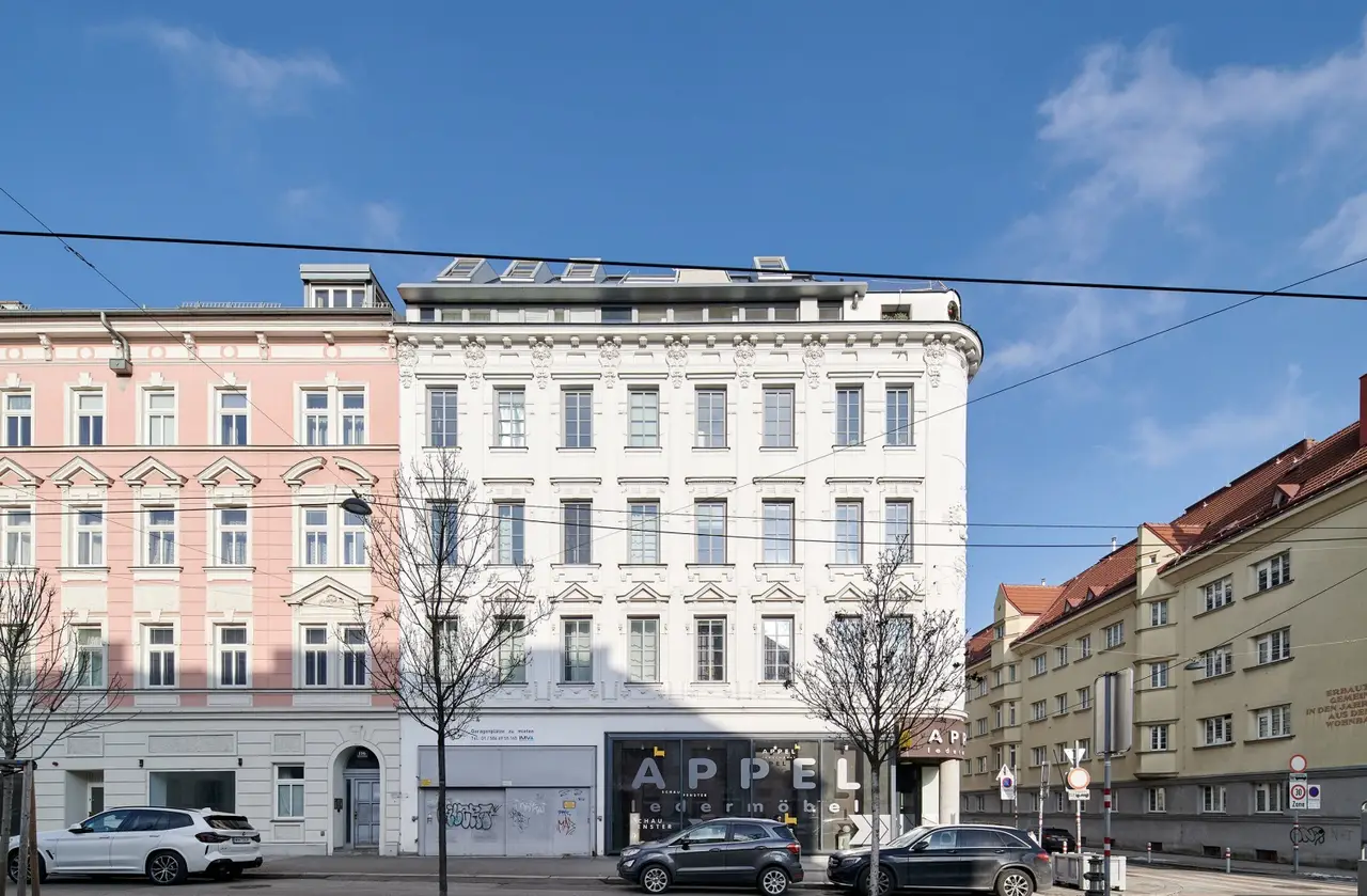 Die ca. 106,47 m² große 3-Zimmer-Maisonettewohnung (Vorraum, 2 Abstellräume, Wohnküche, 2 Zimmer, Galerie, Badezimmer mit Badewanne und Toilette, 1 Gästetoillette, Terrasse/Loggia) befindet sich im Dachgeschoss eines gepflegten Gründerzeithauses, das 2006 saniert und ausgebaut wurde. Sie bietet – kurz-, mittel- und langfristig eine absolute Vorteilslage!