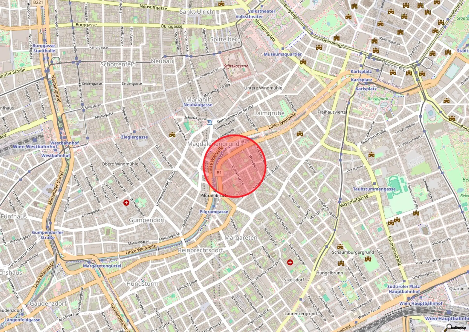 - Top-öffentliche Anbindung: U4 Kettenbrückengasse sowie Pilgramgasse fußläufig erreichbar, zusätzlich Buslinien 12A, 13A und 59A – sehr gute Anbindung in Innenstadt und zur Oper - 10 Minuten zum Hauptbahnhof und 35 Minuten zum Flughafen