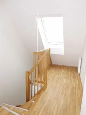 Die ca. 108 m² große Wohnung liegt im 1.+2. Dachgeschoss und umfasst einen Vorraum, eine große Wohnküche, drei Zimmer, eine Galerie mit Zugang auf die Terrasse, einen Abstellraum, ein Badezimmer und eine separate Toilette.
