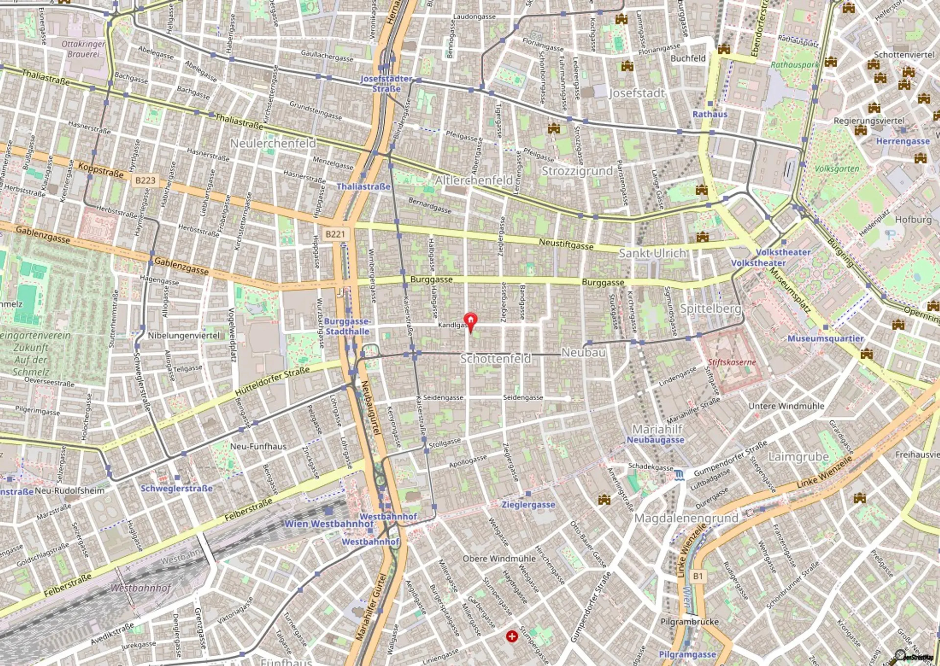 Die Lage überzeugt durch ihre zentrale, urbane Umgebung und beste Infrastruktur. Viele Einkaufsmöglichkeiten, trendige Lokale, Cafés sowie kulturelle Hotspots wie das MuseumsQuartier und die Mariahilfer Straße – Wiens größte Einkaufsstraße – liegen nur wenige Gehminuten entfernt.