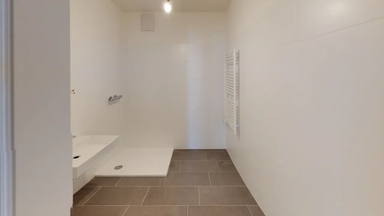 - Badezimmer mit Dusche und Waschmaschinenanschluss