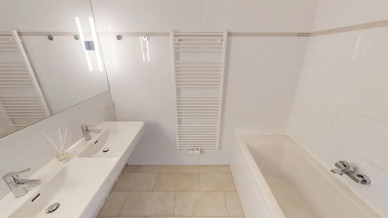 - Fertigparkett mit Holzsockelleisten in Wohn- und Schlafzimmern