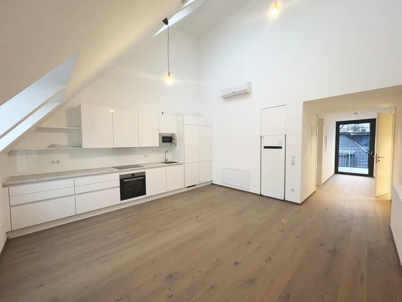 Das Dachgeschoß des sanierten und gepflegten Altbaus wurde vor kurzem ausgebaut. Die hier entstandenen 2 und 3 Zimmer Wohnungen verfügen alle über Freiflächen in Form von Balkonen oder Terrassen und sind mit Klimaanlage und Wärmepumpen ausgestattet.