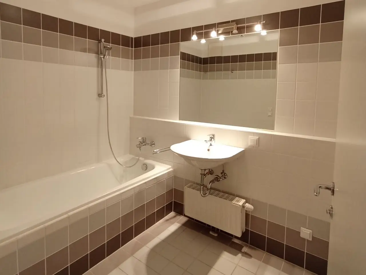 - Badezimmer mit Badewanne und Waschmaschinenanschluss