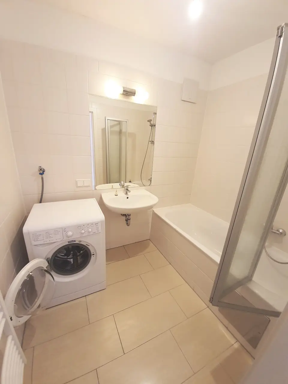 - Badezimmer mit Badewanne und Waschmaschinenanschluss