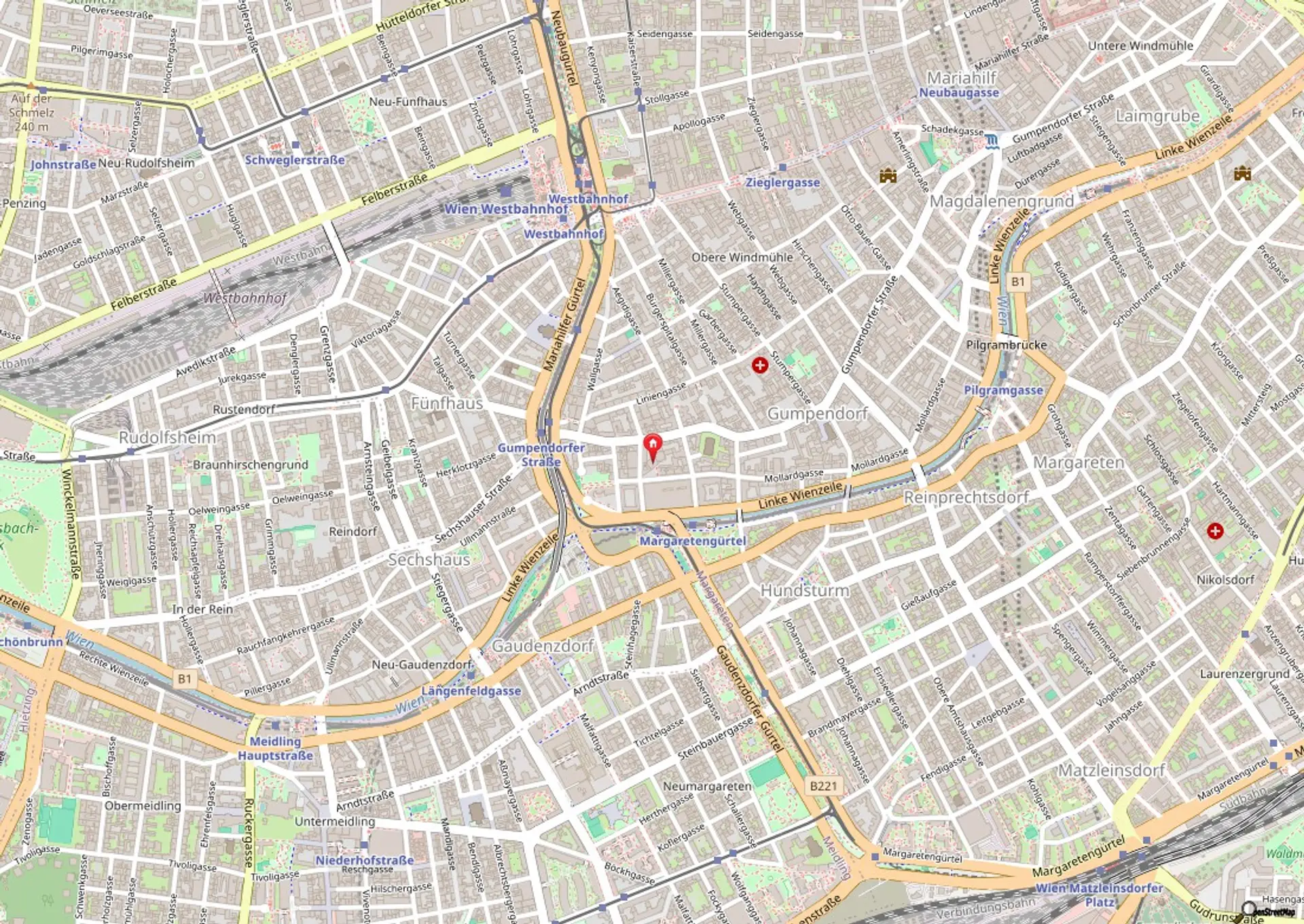 Die Lage ist zentral und urban, nahe U-Bahn und Straßenbahn für beste Anbindung. In direkter Umgebung befinden sich trendige Cafés, Restaurants und Einkaufsmöglichkeiten. Der beliebte Naschmarkt und die Mariahilfer Straße sind nur einen kurzen Spaziergang entfernt.