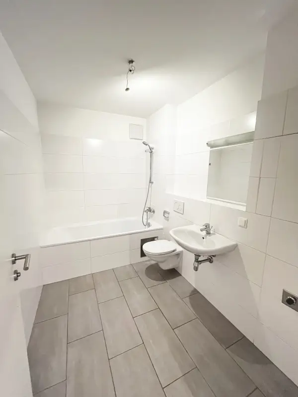 - Badezimmer mit Badewanne, Toilette und Waschmaschinenanschluss