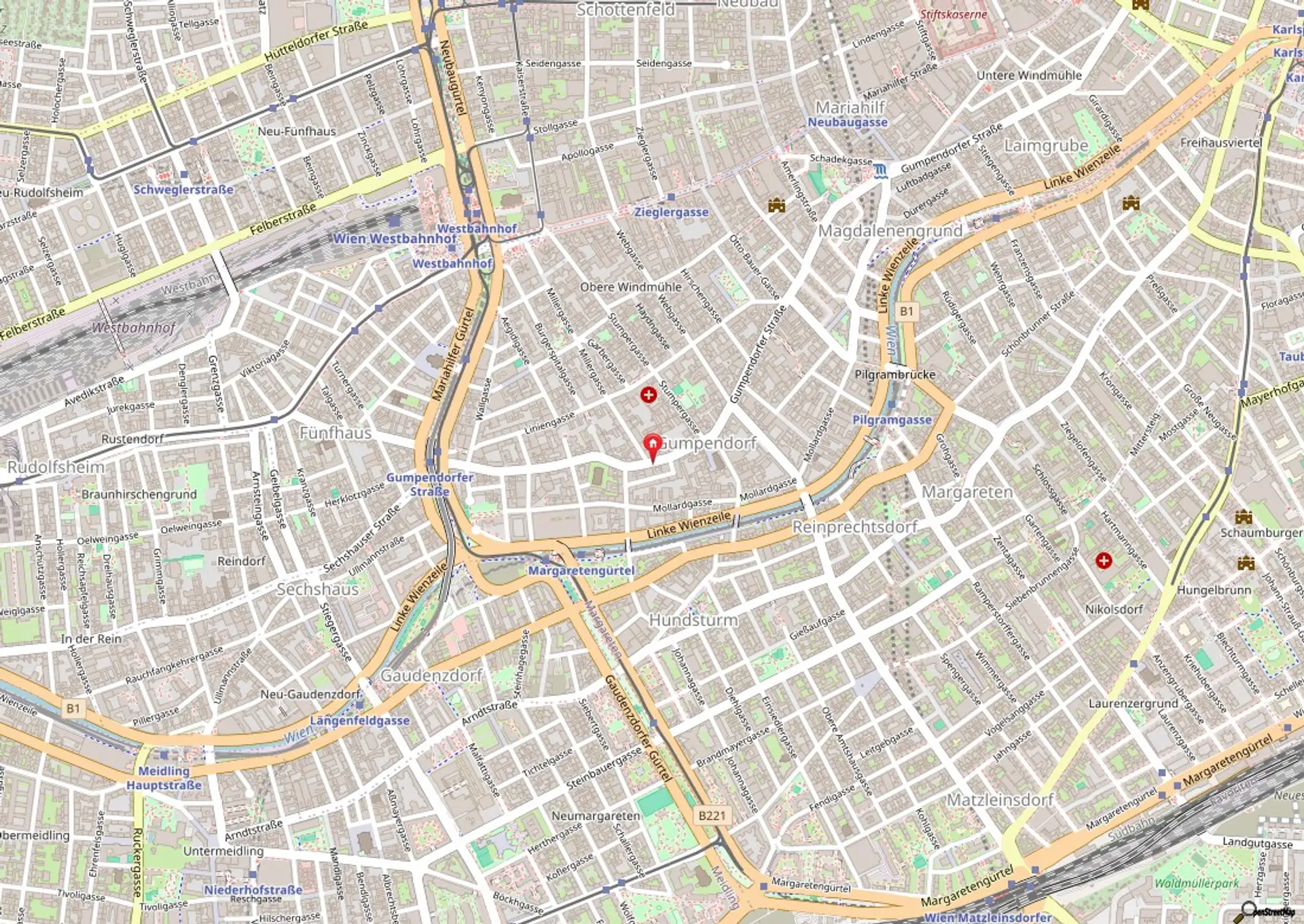 5. Bezirks. In der Nähe finden sich der Naschmarkt, hippe Cafés, Restaurants und grüne Oasen wie der Alois-