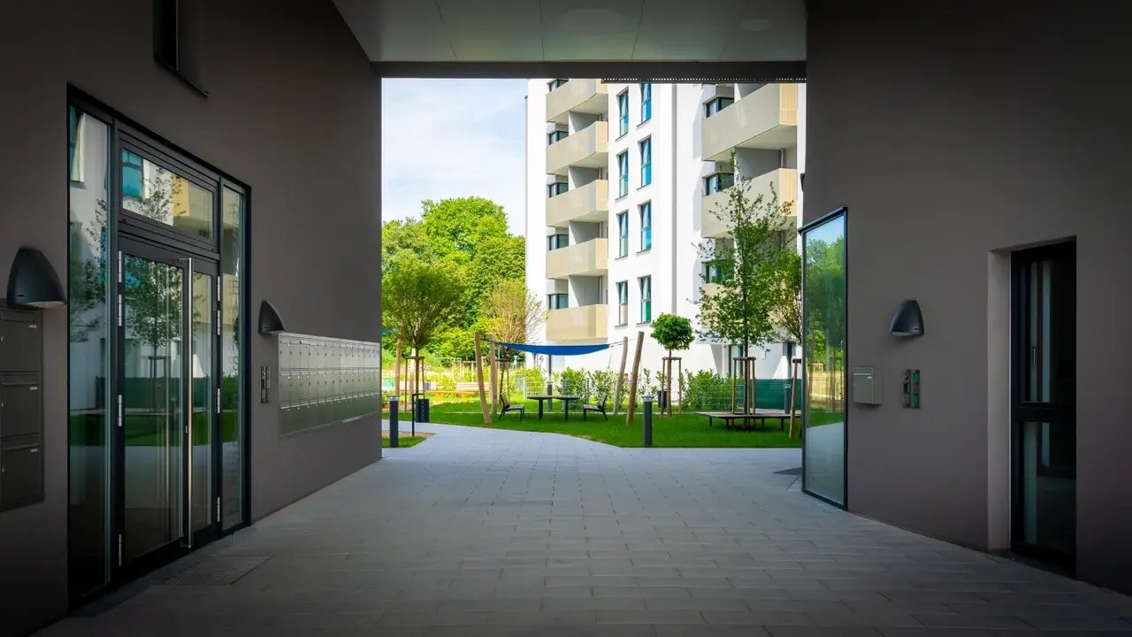 Die Wohnhausanlage: Großzügige Fahrradabstellräume und Abstellmöglichkeit im Innenhof / Kinderwagenabstellräume in allen Etagen / Spielplatz / Geräumiges Kellerabteil / Barrierefreier Zugang zur Wohnung / Möglichkeit der Anmietung von Stellplätzen/ Garage