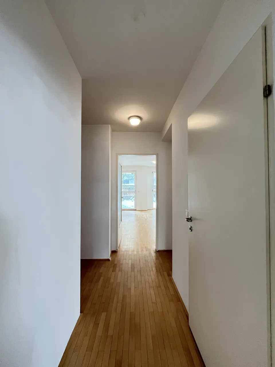 Die ca. 48 m² große Wohnung befindet sich im Erdgeschoss eines schönen Neubaus und gliedert sich in einen Vorraum, einen Wohnraum mit Küchenzeile (Mikrowelle, Kühlschrank mit Gefrierfach, zwei Kochplatten und Geschirrspüler – kein Backrohr), mit Zugang zur Terrasse und zum Garten, ein gemütliches Schlafzimmer sowie ein Badezimmer und eine separate Toilette.
