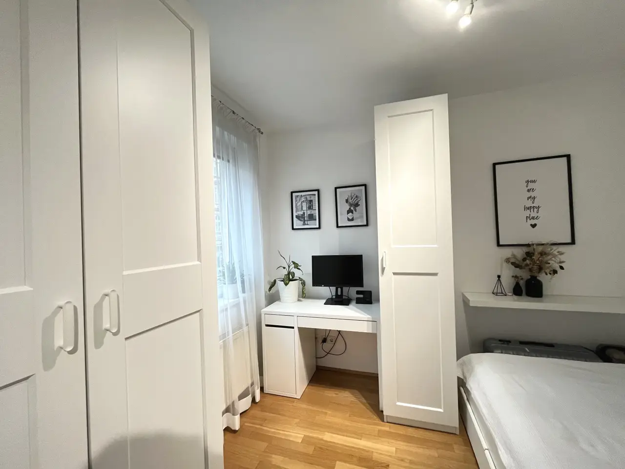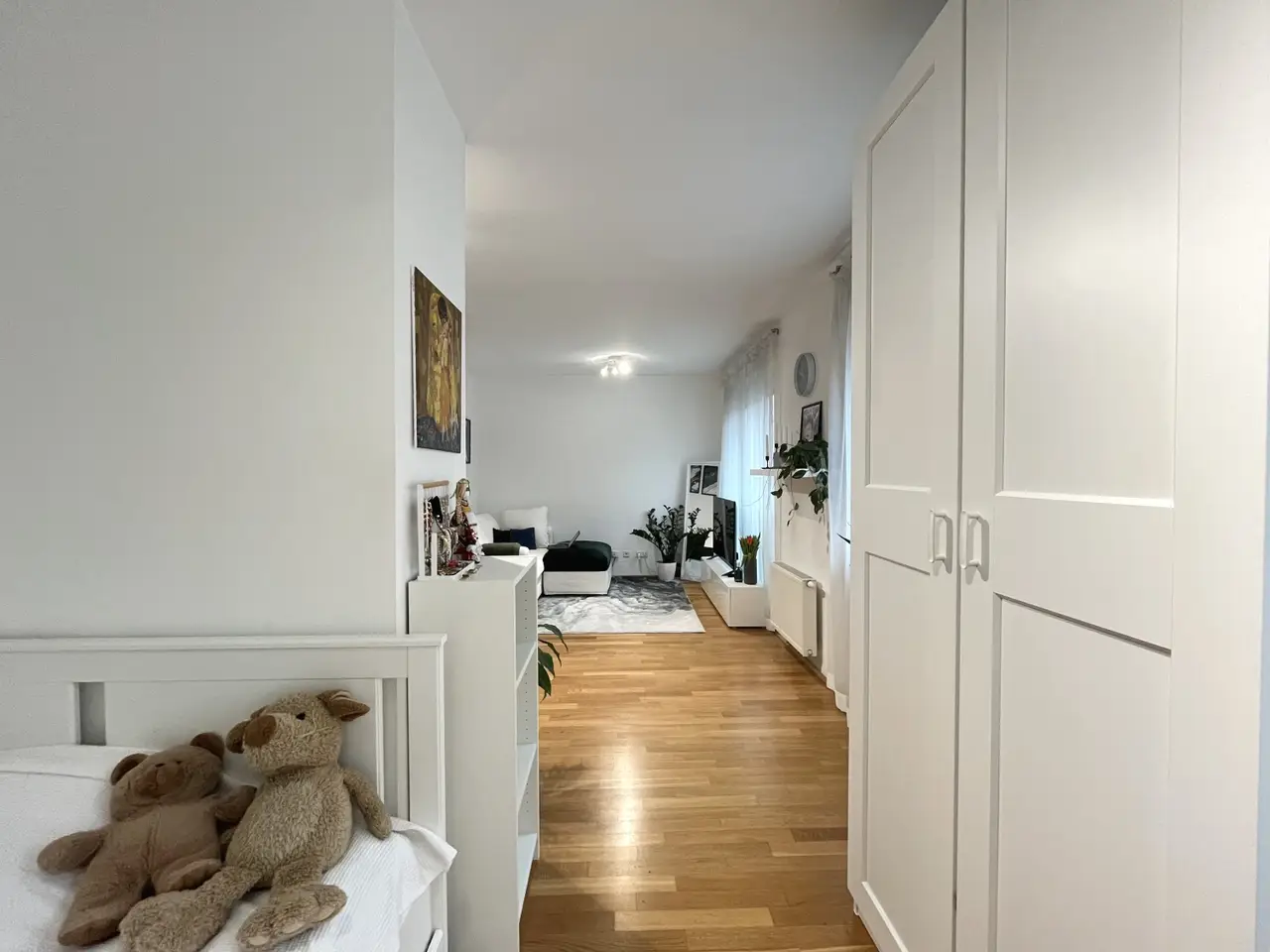 Die ca. 35 m² große Wohnung befindet sich im 1. Obergeschoss eines gepflegten Neubaus und gliedert sich in einen einen Vorraum, ein Wohnraum mit Küchennische, einen Schlafbereich sowie ein Badezimmer mit Toilette.