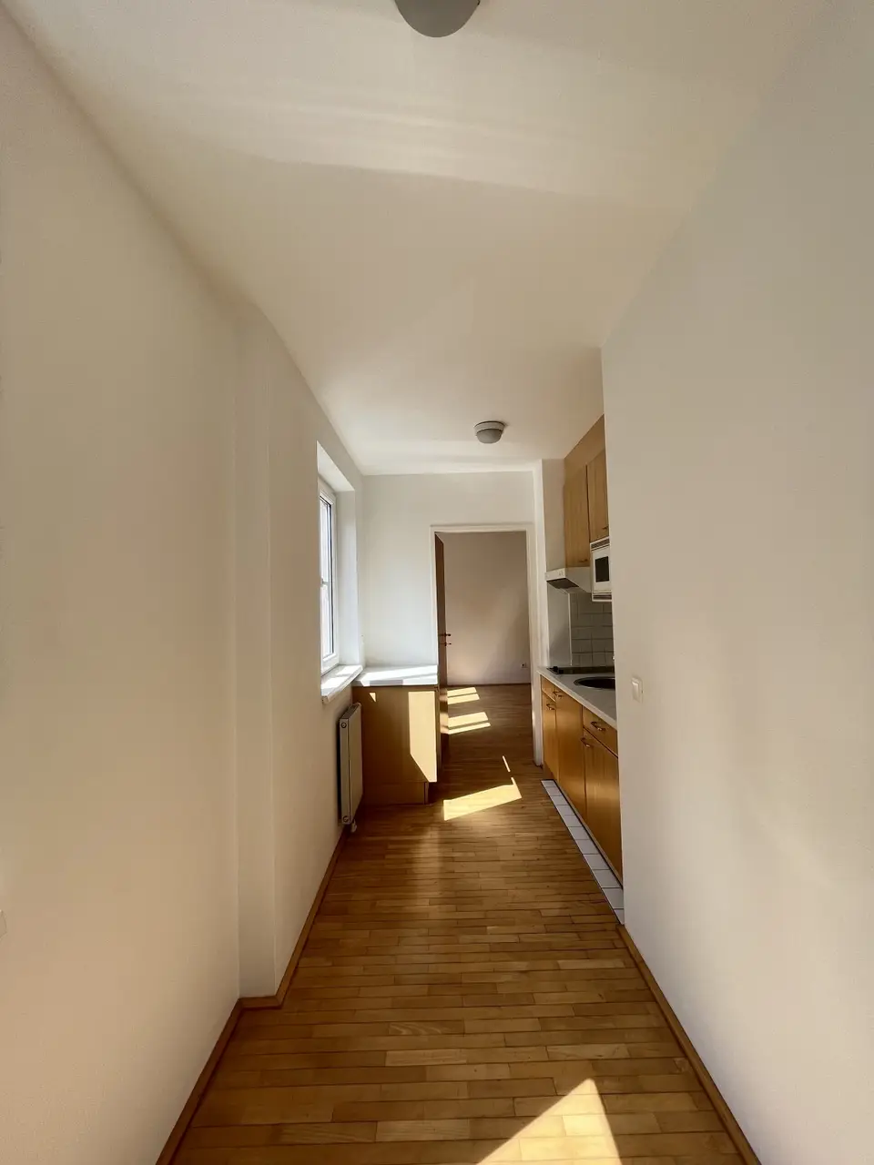 Die ca. 38,5 m² große Wohnung liegt im 2. Obergeschoss eines Neubauhauses und gliedert sich einen Vorraum, eine Küche mit großer Abstellnische, ein helles, großzügig geschnittenes Wohn-/Schlafzimmer sowie ein Badezimmer mit Toilette. Einige Highlights: