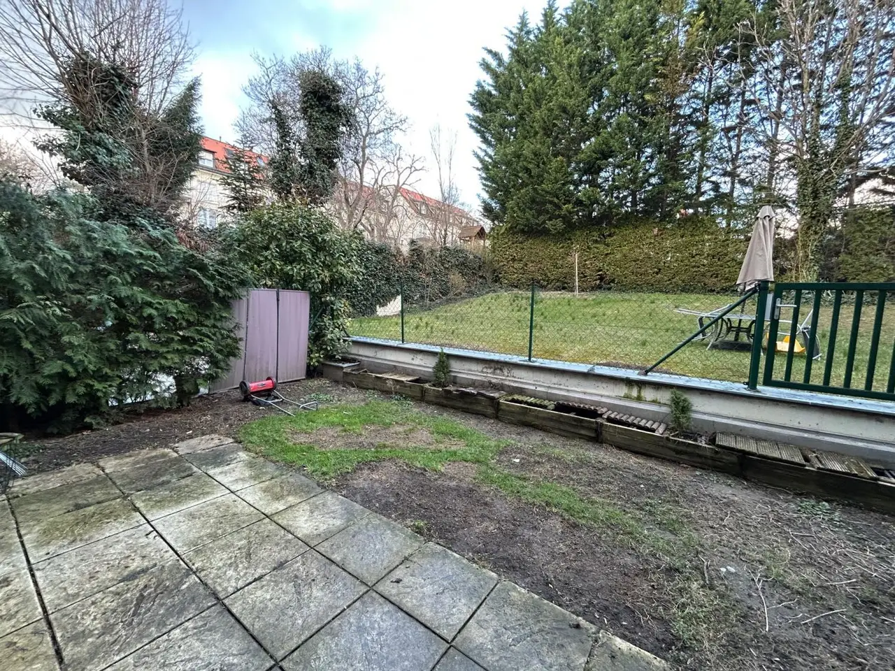 - Terrasse (ca. 12 m²) + Eigengarten (ca. 32 m²)