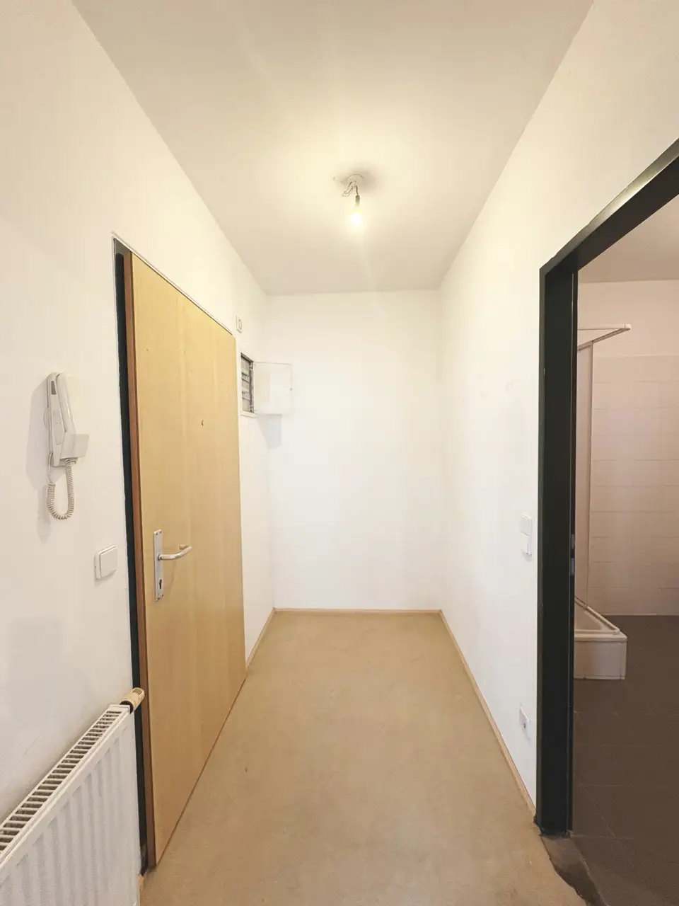 Die Wohnung befindet sich im 1. Obergeschoss und gliedert sich in einen Vorraum, einen großzügigen Wohn-/Schlafraum mit Kochnische und ausreichend Platz zum Wohlfühlen und ein Badezimmer mit Dusche,Handwaschbecken, Waschmaschinenanschluss und Toilette.
