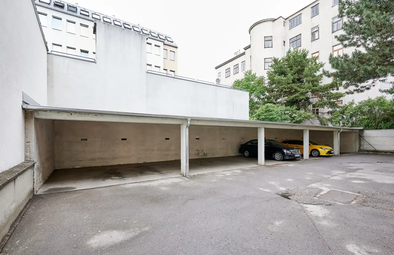 Zum Verkauf gelangt ein überdachter Stellplatz im Innenhof eines gepflegten Mehrparteienhauses.