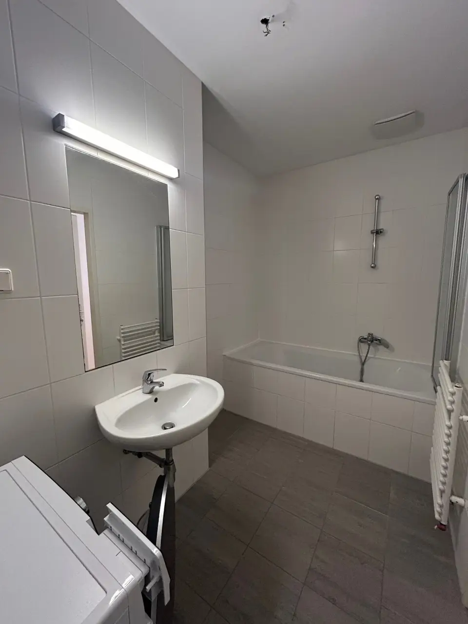 - Badezimmer mit Badewanne und Waschmaschinenanschluss